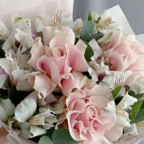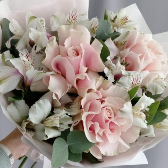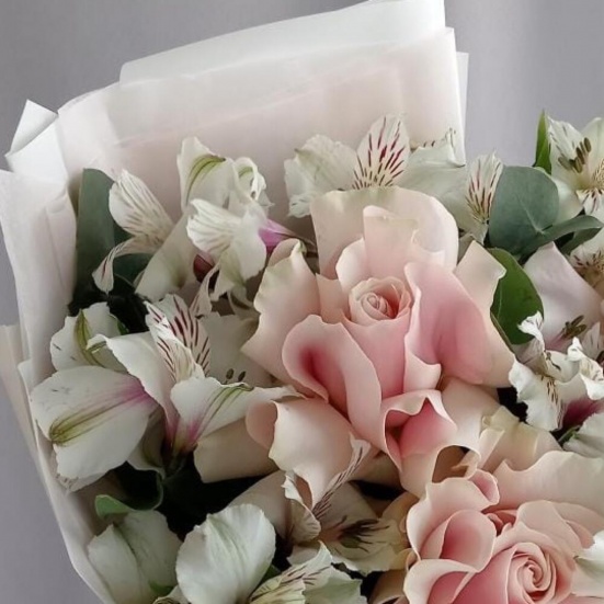 Букет из 3 французских роз и Альстромерии в Ангарске