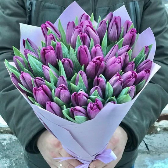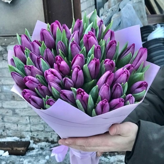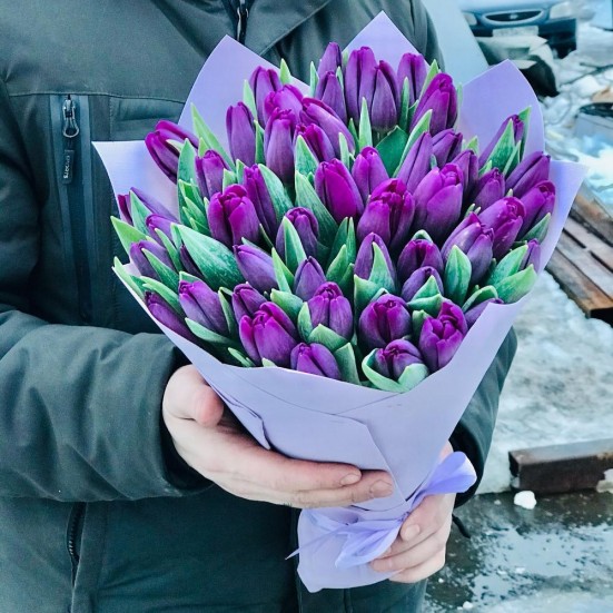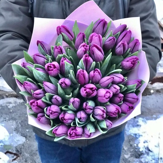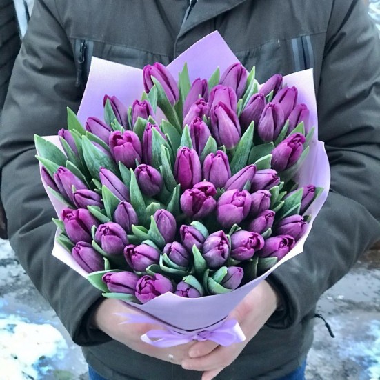 Букет из 51 фиолетового тюльпана в Ангарске