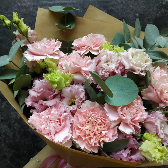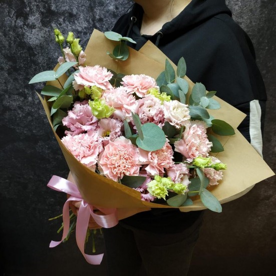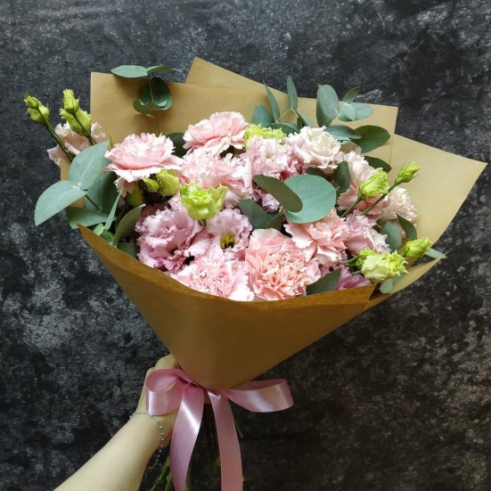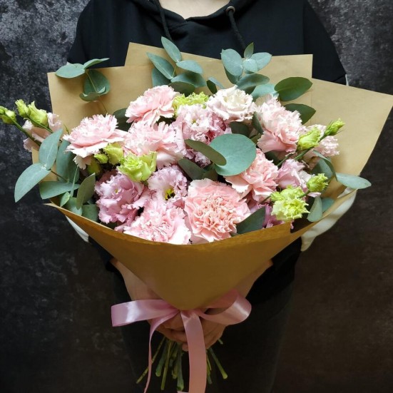 Букет из кустовых гвоздик и эустомы в Ангарске