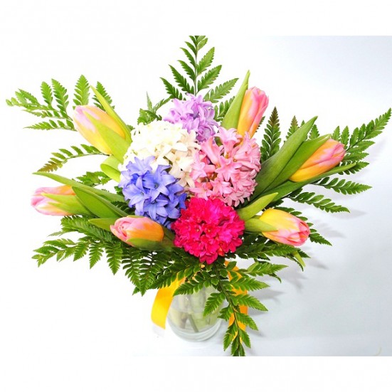 Букет «Гиацинтов и тюльпанов с папоротником»