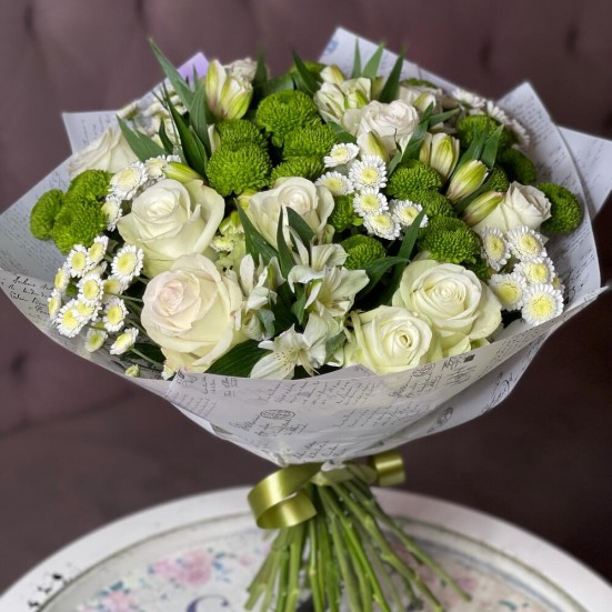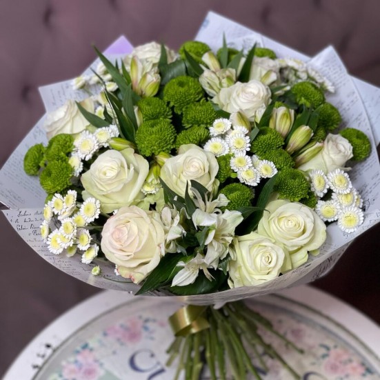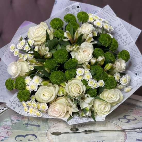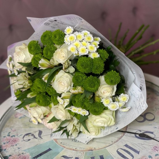 Букет «Розы и зеленые хризантемы» в Ангарске