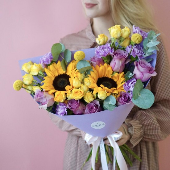 Букет «Стильный с подсолнухами» в Ангарске