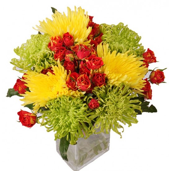 Букет «Одноголовых хризантем и кустовых роз»