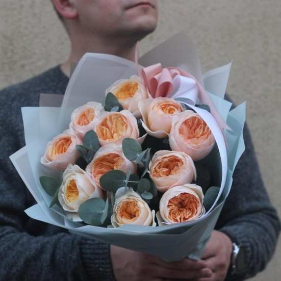 Букет из пионовидных роз Дэвида Остина в Ангарске