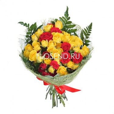 Букет из красных и желтых кустовых роз
